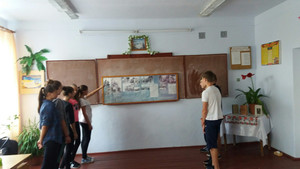 Учні 9 класу на тематичній годині присвяченій 150-ти річчю від дня народження Михайла Грушевського.